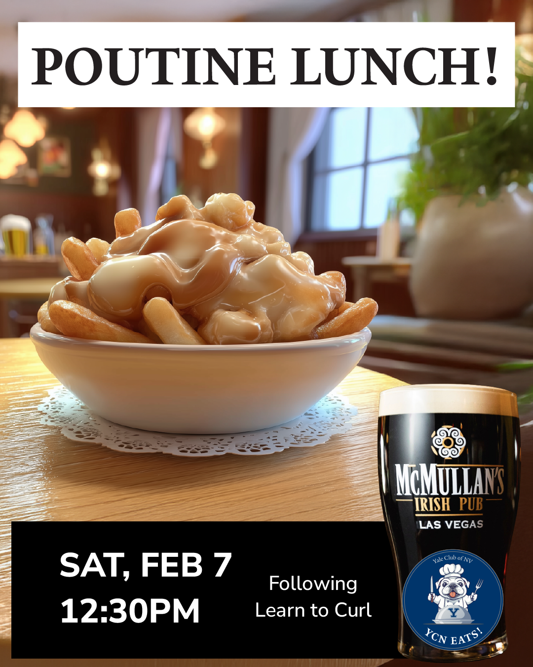 After the Learn to Curl event at 10:30AM, we’re following up one popular Canadian pastime with another: poutine! (Okay, this one’s Irish style, but hey, we’re close!) There is also a full menu of other tasty items.